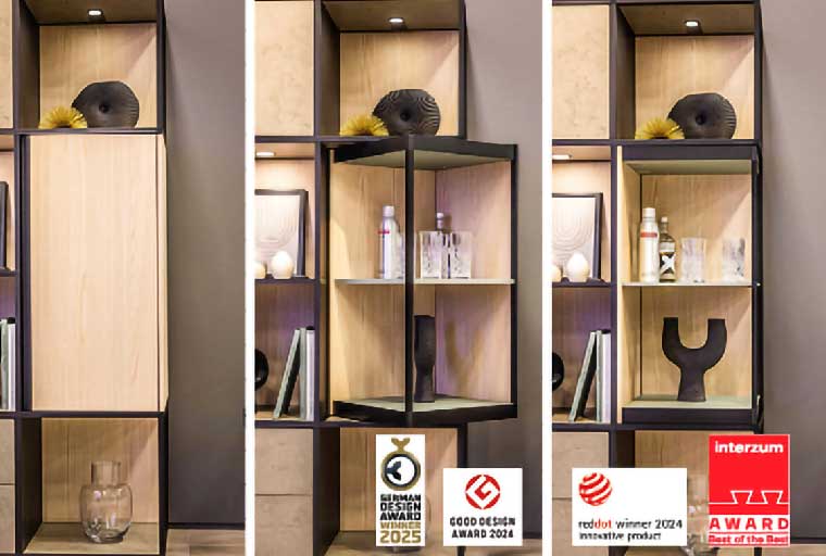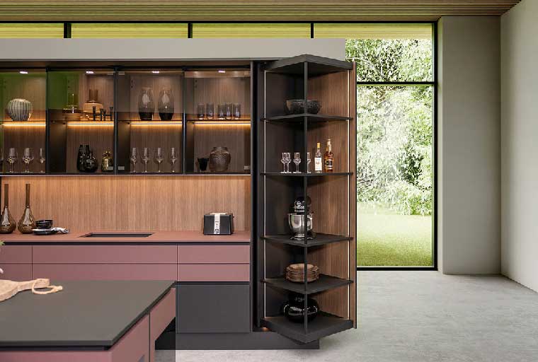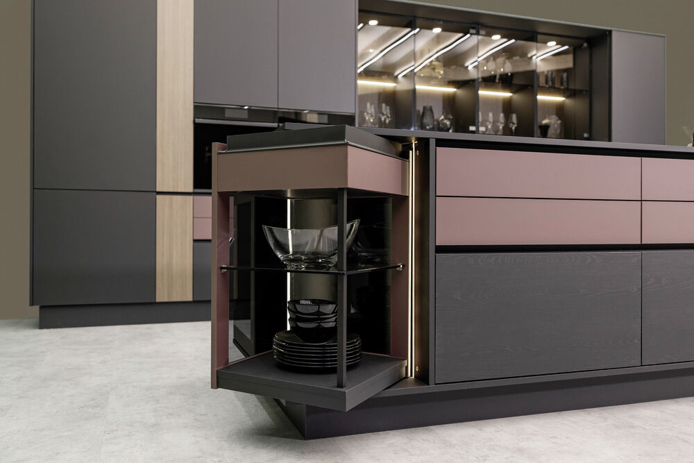 FurnSpin 是 Hettich 所推出的旋轉式轉角收納系統,具備旋轉與平移雙重動作,讓櫃體可以順暢旋轉至 180°,實現「櫃內變櫃外」、開合無縫的效果 。
